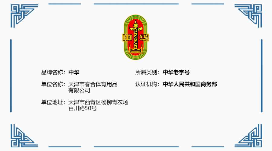天津市春合体育用品有限公司始建于1922年,是我国生产经营体育用品历史悠久的“中华”老字号国有企业,早在三十年代,张学良、杨虎城为春合题词“作新利器”、“自强不息”,以激励民族体育发展。新中国成立以来,在党和政府的扶植下发展壮大,为中华民族体育事业的腾飞做出了突出的贡献。