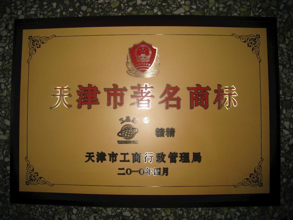 2010年天津市工商局授予“卫星牌”糖精钠天津市著名商标荣誉称号;
