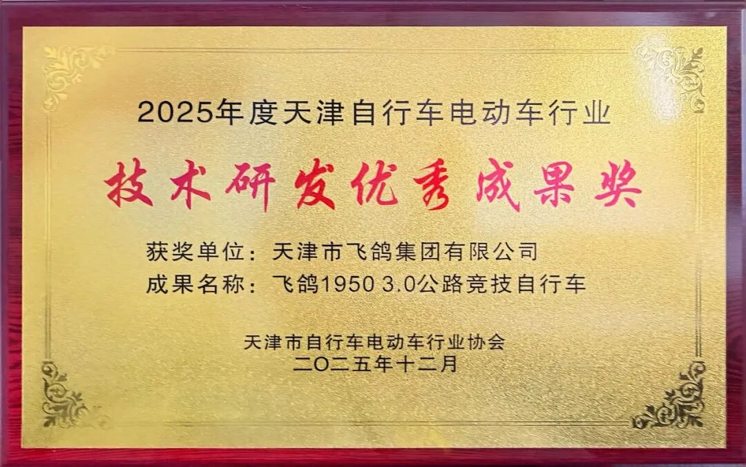 日前,“2025 天津自行车电动车行业科技创新大会”在天津天开高教科创园举行。会上,飞鸽集团所属“飞鸽1950”3.0公路竞技自行车凭借技术突破与卓越性能优势,斩获2025年行业“技术研发优秀成果奖”,这是飞鸽集团连续两年获得此项殊荣,既是对企业持续深耕技术创新的高度肯定,更彰显了中华老字号品牌在高端竞技自行车领域的硬核实力。“十四五”以来,飞鸽集团始终以科技创新为核心驱动,持续为老字号品牌振兴赋能赋智。此次获奖的“飞鸽1950”3.0公路竞技自行车,正是企业品牌技术积淀与创新精神的集中体现,此前该车已成功通过国际自行车联盟(UCI)认证,达到世界级竞技赛事标准,成为兼具专业性能与品质保障的国货标杆。在第十五届全运会赛场上,这款硬核装备更成为天津飞鸽自行车队战车,助力队员们驰骋赛道、奋勇争先,以扎实表现彰显了竞技体育中的“国货力量”。目前,中国自行车消费市场正加速从“销量导向”向“结构优化、品质升级、智能体验”加速迈进,行业数字化、智能化转型浪潮推动质量标准同步迭代升级。此次连续两年荣获技术研发大奖,不仅是行业对飞鸽技术实力的高度认可,更坚定了企业以创新驱动发展的战略定力。未来,飞鸽集团将继续以技术创新为引擎,深耕高端竞技与民用市场,持续突破关键核心技术,推动中国自行车产业向更高质量、更高水平迈进,在世界级舞台上书写中国创造的荣耀篇章。